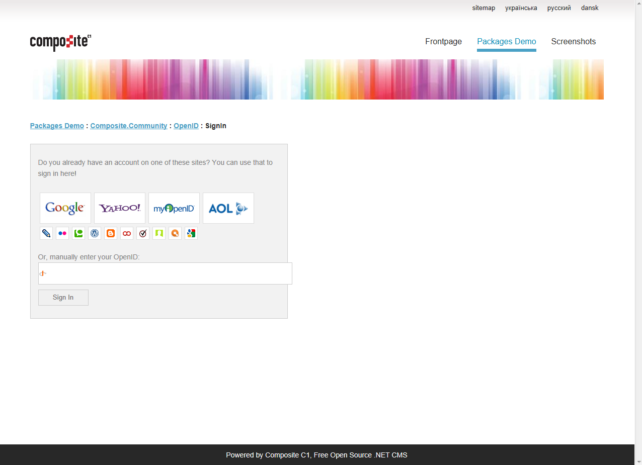 To view the pages or their content, users should first sign in with their OpenID or one of the OpenID providers (Google, Yahoo etc). If the users have not signed in, they are redirected to the page with the OpenID based sign-in form.