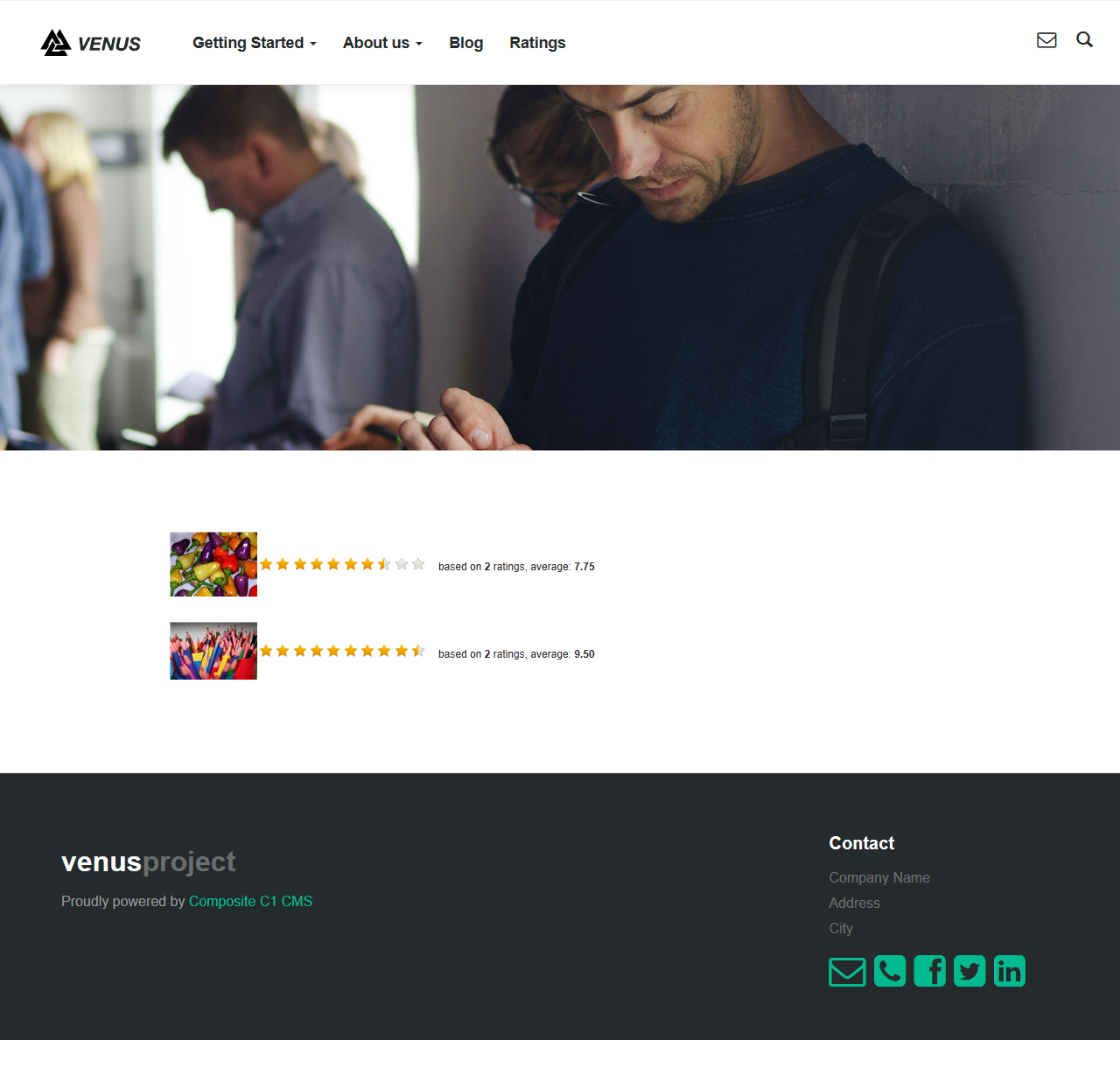 Composite.Community.Raty allows the visitors to a website rate pages, images and other content on a website. The rating feature is based on Raty, a jQuery plugin that automatically generates a customizable star rating.