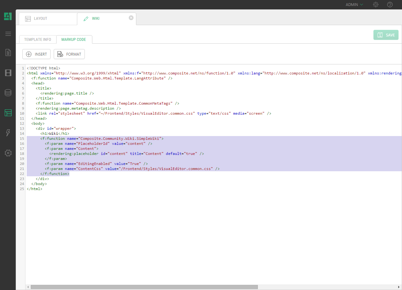 Composite.Community.Wiki.SimpleWiki enables people visiting the website to change the content of a page in a simple Wiki-like way.