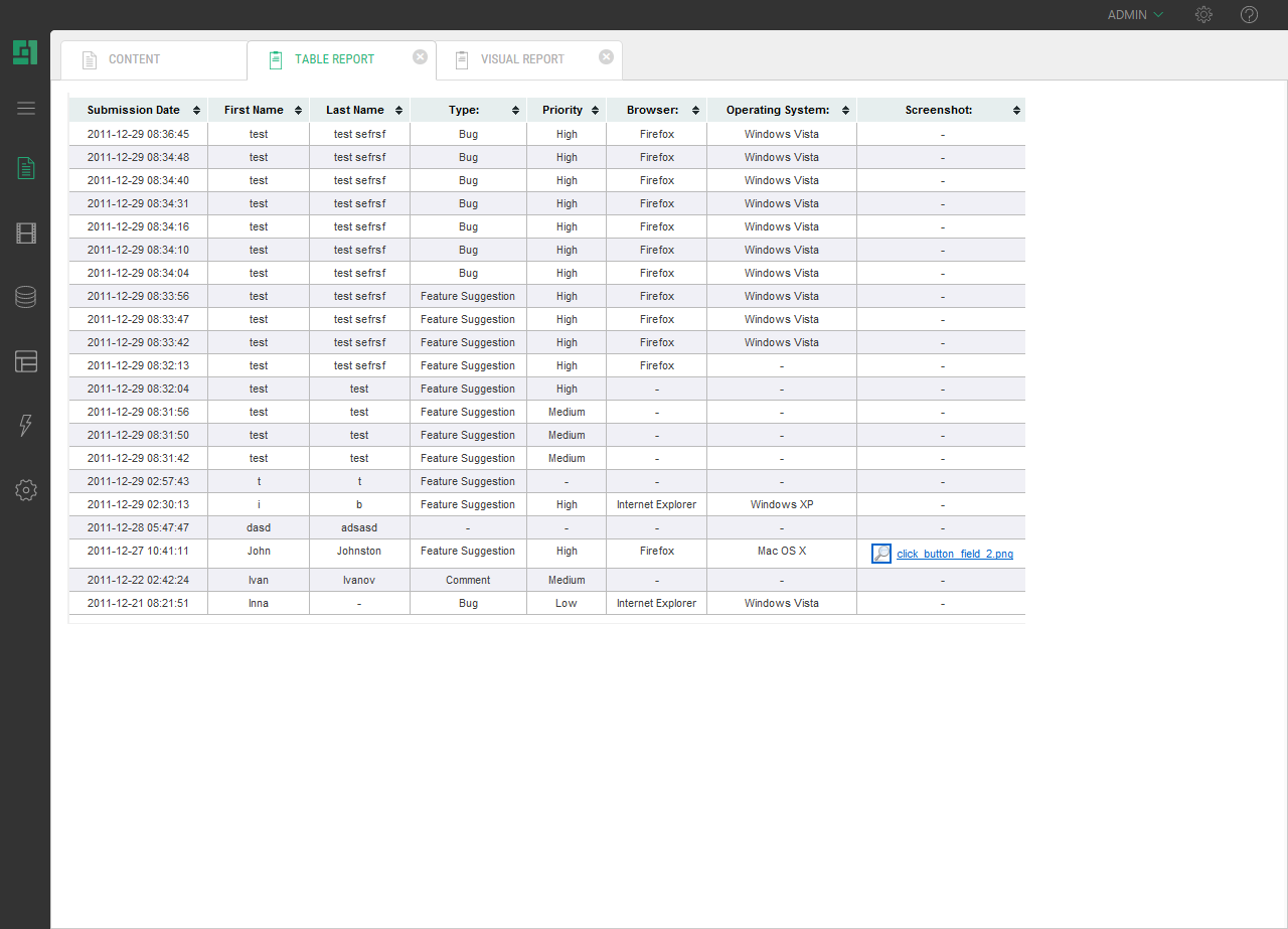 The package also allows you to view submission reports for these forms in the CMS Administrative Console. The reports can be of various types (grid-like reports, HTML tables, Excel spreadsheets etc).