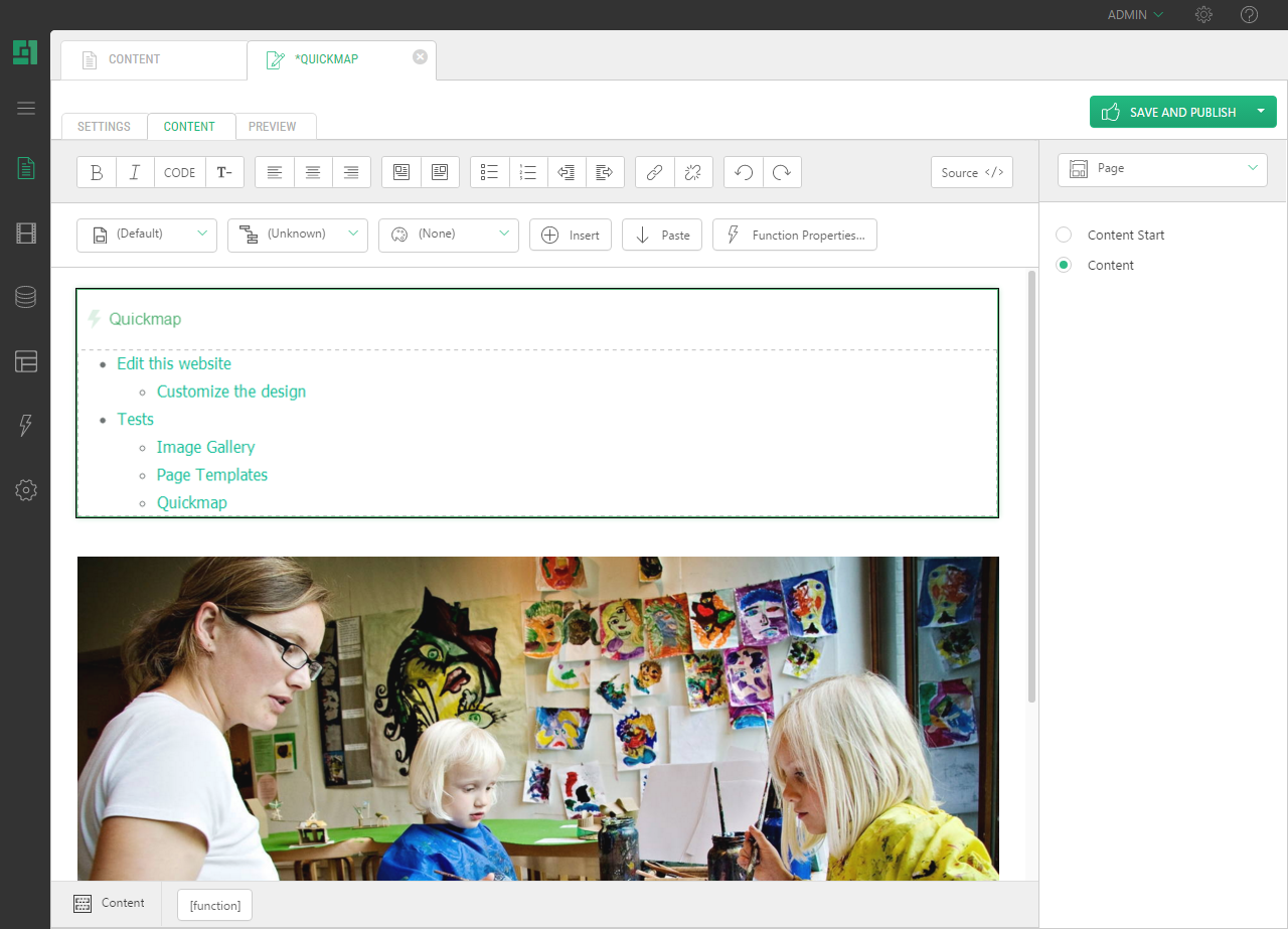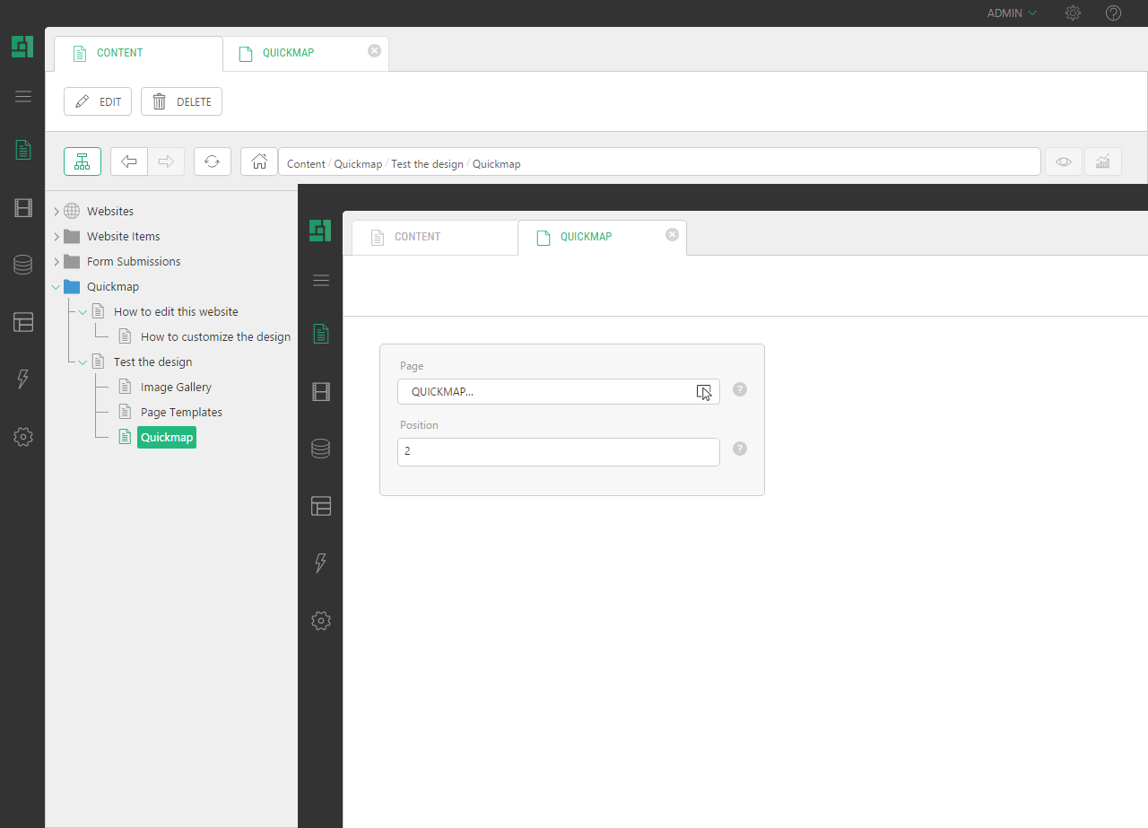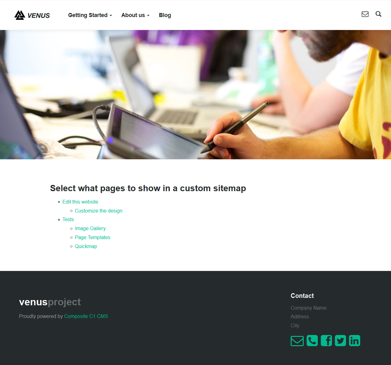 Composite.Navigation.Quickmap allows you to create a sitemap of your website in a quick and simple way. The quick sitemap presents two levels of page links in the hierarchy: top links (that may serve as categories) and sublinks.