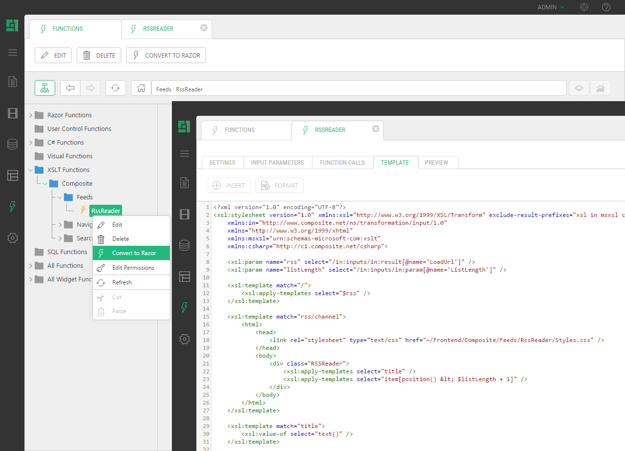 It adds the button "Convert to Razor" to the toolbar and the menu item to the context menu of XSLT functions.
