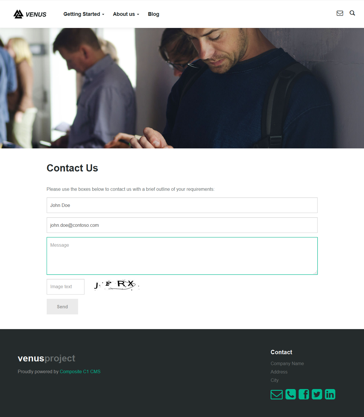 When the visitor submits the message, you will receive an email at the specific address. A copy of the message is also saved on your CMS Website in a dedicated data type.