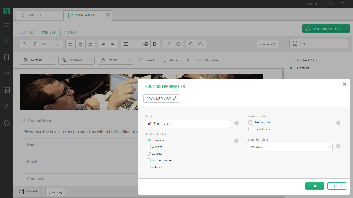 Orckestra.Forms.ContactForm allows you to add a contact form to your website so that people visiting your website could send messages to you without leaving the page.