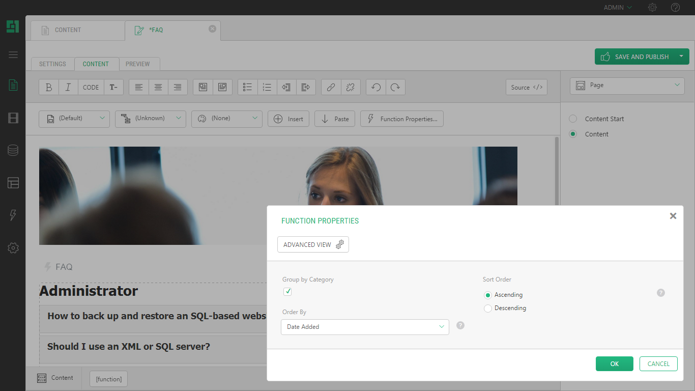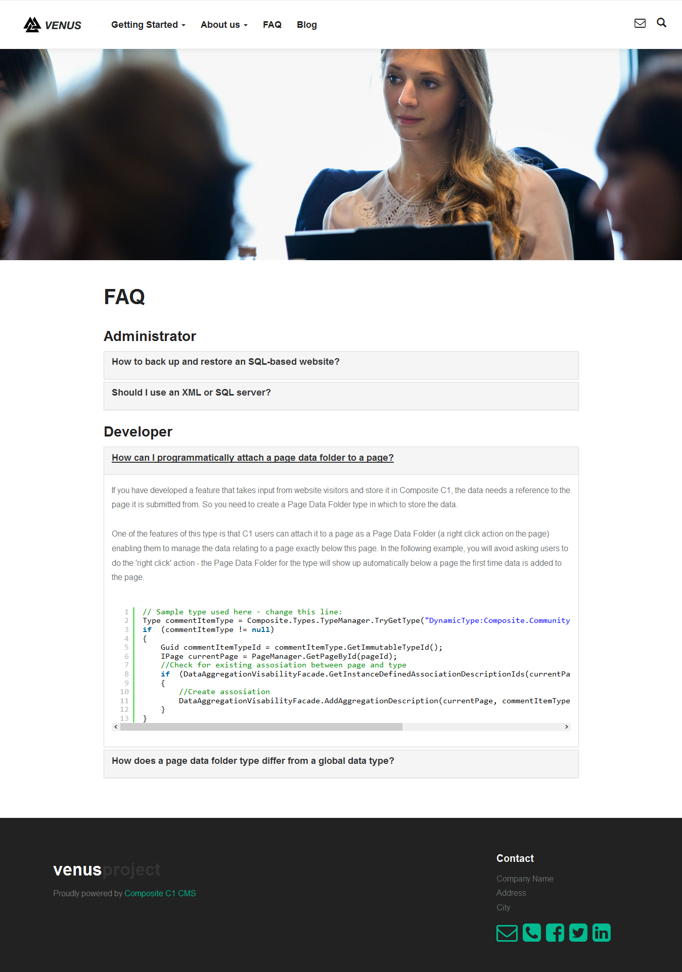 Orckestra.Lists.FAQ allows you to add FAQs to your website and provide users with information about typical issues, workarounds, tips and tricks as question-answer pairs.