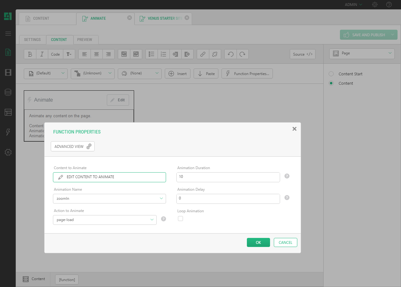 This add-on allows you to animate content on a page. It is based on Animate.css and jQuery.appear.