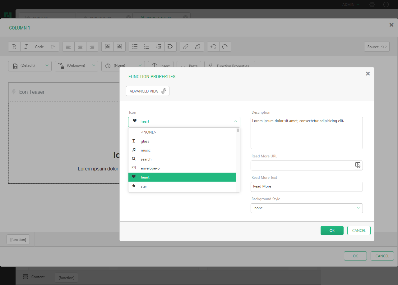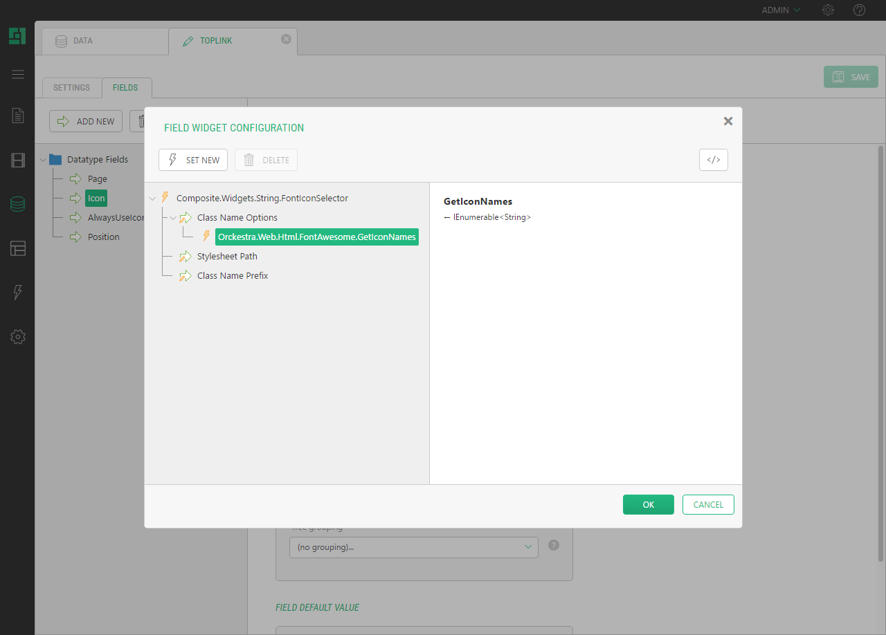 The add-on comes with a function called "GetIconNames" used in the FontIconSelector widget, which lists Font Awesome icons and allows you to choose an icon from the list.